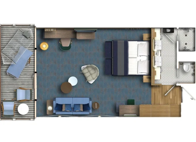 | JKAO - Junior Suite s balkonem 26 m² + balkon 7 m² se stolem. 10,11. paluba. Max 4 osoby. Výhody Junior Suite. | 291 588 Kč 145 794 Kč za osobu | ||