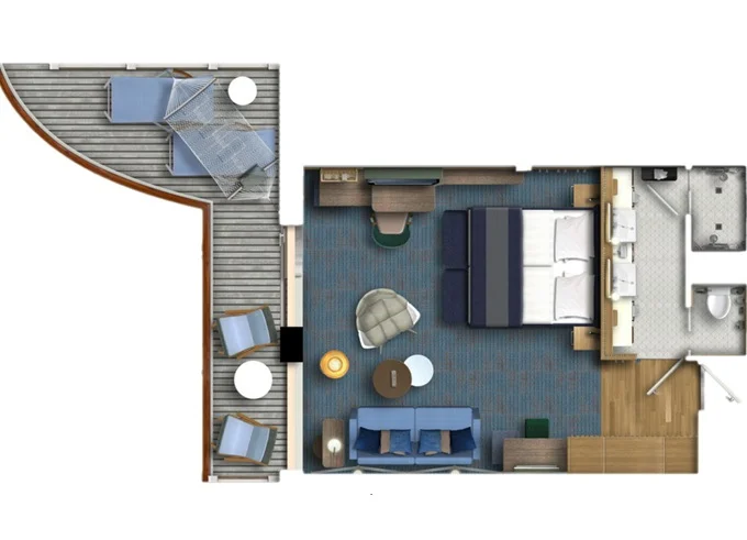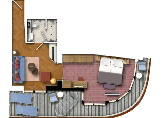 | JBAO - Junior Suite s balkonem 26 m² + balkon 7 m² se stolem. 10,11. paluba. Max 4 osoby. Výhody Junior Suite. | 255 509 Kč 255 509 Kč za osobu |