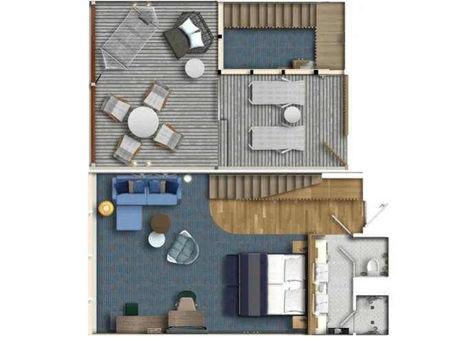 | SUHO - Himmel & Meer Suite 42 m² + prekrytá terasa 29 m² v patře se stolem, lehátky a s houpací sítí. Ložnice s obývací částí a jedálenským kútom. 15. paluba. Max 4 osoby. Výhody Suite. | 360 739 Kč 360 739 Kč za osobu | ||