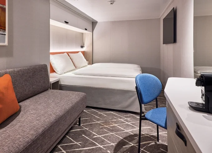Kajuty vnitřní (též varianty single či rodinná kajuta), kajuty s oknem (též varianty single či rodinná kajuta), kajuty s balkonem (též variantsingle či rodinná kajuta), junior suite, suite.