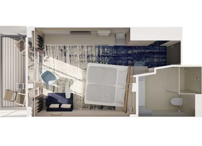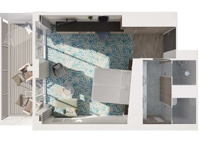 BKUR - Kajuta s balkonem PUR 17 m² + balkon 5 m². Max 4 osoby. Cenový model PUR. 72 308 Kč 24 103 Kč za osobu