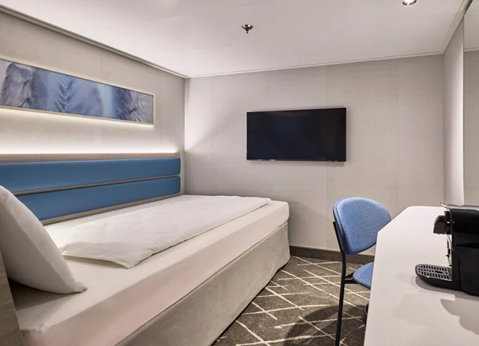 | EKBO - Kajuta s balkonem Single 11 m² + balkon 5 m². 11. paluba. Max 1 osoba. | 61 359 Kč 61 359 Kč za osobu | ||